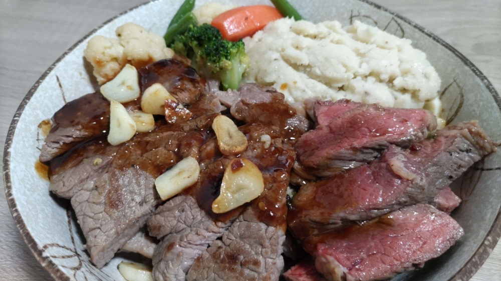 焦がしニンニクにオリーブオイル、焼肉のたれ、バターをいい感じにしたもの。