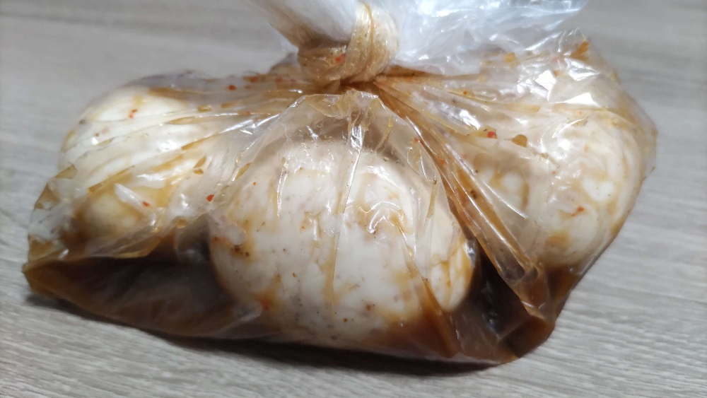 適当に即席で作った秘伝のタレに漬け置き。続く。